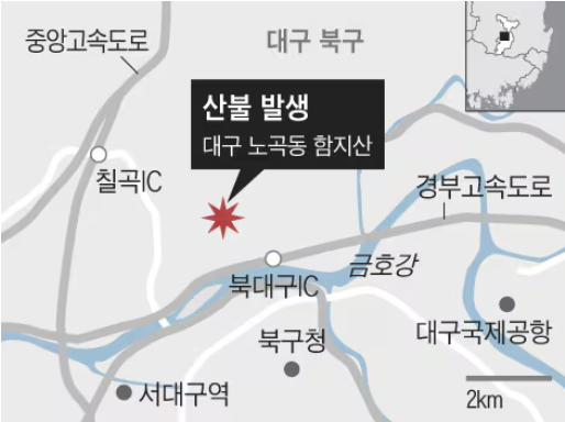 - 대구 함지산 산불 발생 → 국가 차원의 소방 동원령 발령